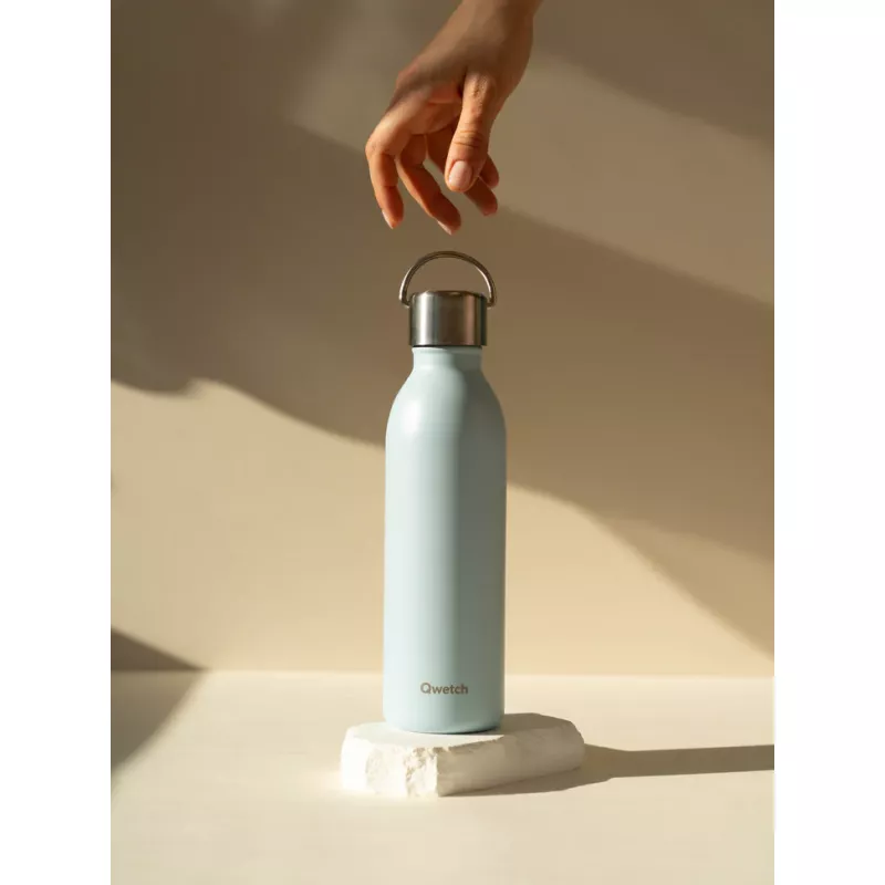Emmenez vos boissons préférées partout en choisissant la bouteille isotherme ACTIVE Bleu Pastel de chez Qwetch.