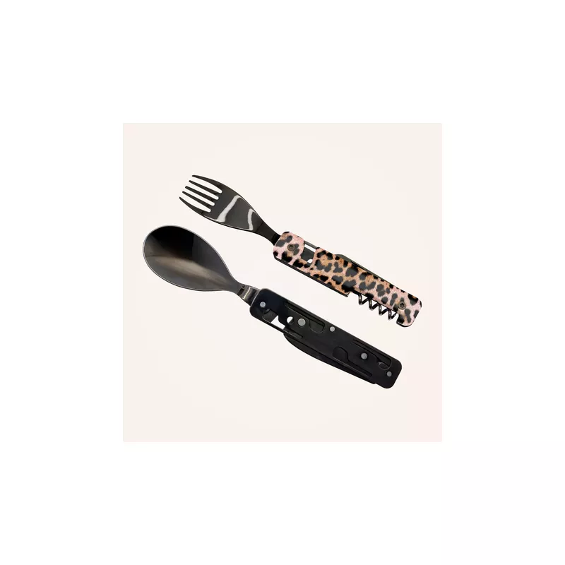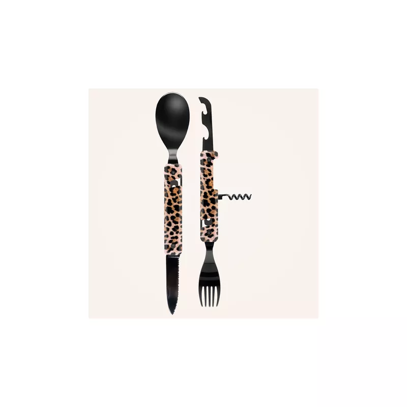 AKINOD 13H25 Set De Couverts Pliants Multifonctions Inox Nomades LEOPARD Finition Black