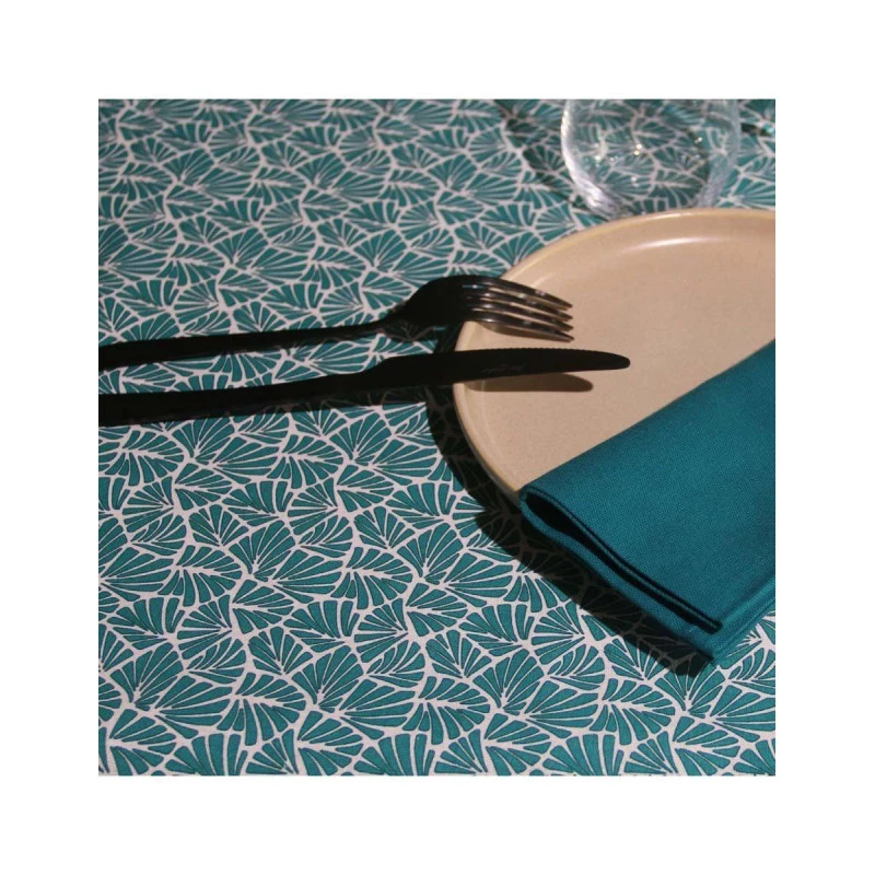 Nappe enduite 100% coton imprimée de jolis motifs modernes aux couleurs chaleureuses.