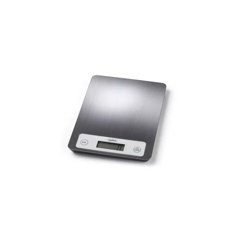 Son plateau en acier inoxydable permet de peser aussi bien les ingrédients secs que liquides grâce à sa fonction TARE. L’écran numérique, qui peut être réglé en g ou en oz, est contrôlé via les boutons situés à l’avant.