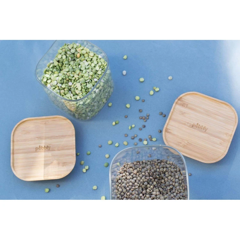 Couvercle en bambou avec joint silicone et dessus légèrement creusé pour accueillir des boites en superposition.