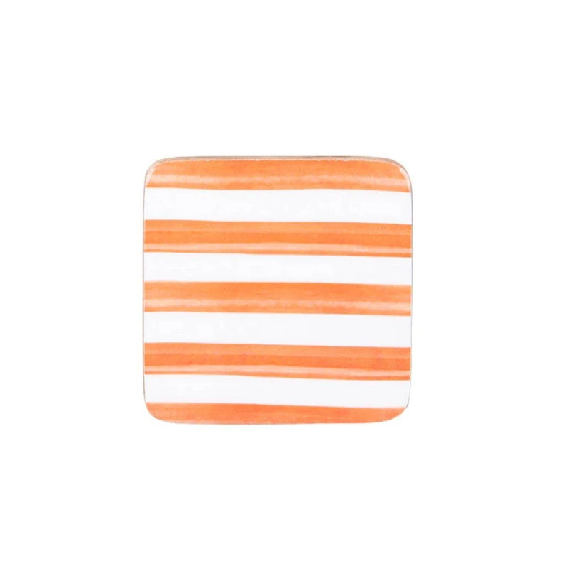 Set de 4 dessous de verre 10 cm de fabriqué en bois de manguier, chaque dessous de verre est doté de motifs rayés aux couleurs peps sur un fond blanc éclatant, apportant une touche de fraîcheur et de charme à votre décor.