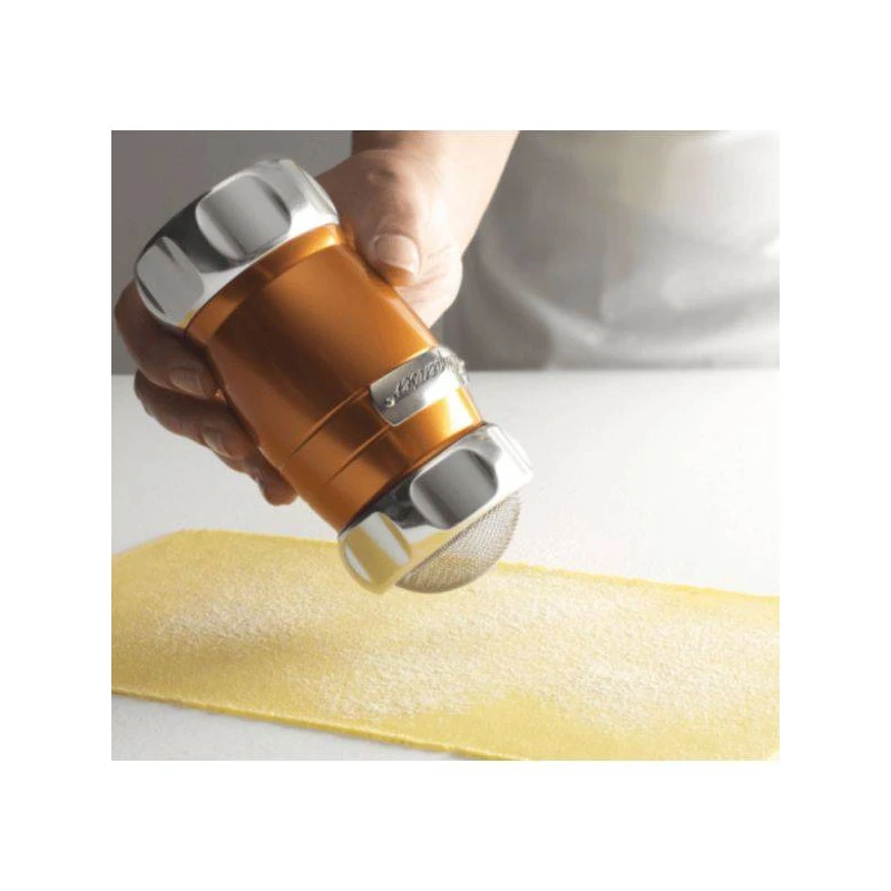 Assez vite indispensable dans la confection des pâtes fraiches, il permet de disperser de façon parcimonieuse, la juste quantitĂ©.Â