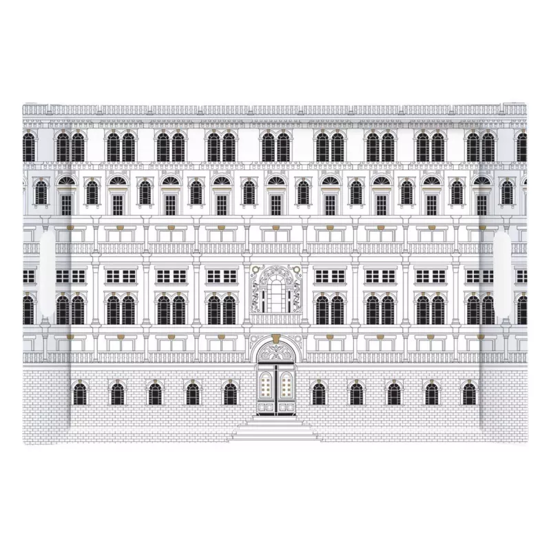 Le détail particulièrement soigné des traits et motifs (blancs, noirs et dorés) de ces somptueuses demeures méditerranéennes hypnotisera littéralement vos invités.