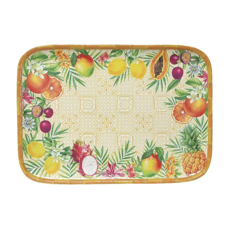 Gamme aux motifs gourmands et colorés pour un service de table à l’aise au jardin comme au camping.