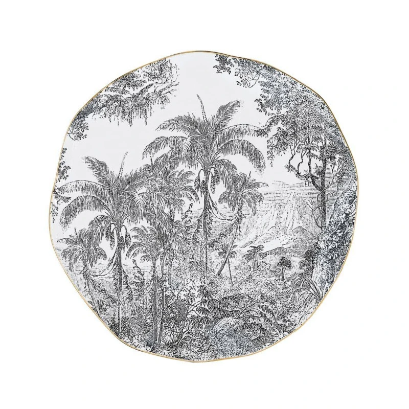 Assiette plate en porcelaine décor de forêt en noir et blanc