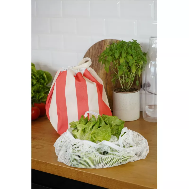 Placez la salade lavée dans le filet, insérez-le dans le sac, puis fermez-le.