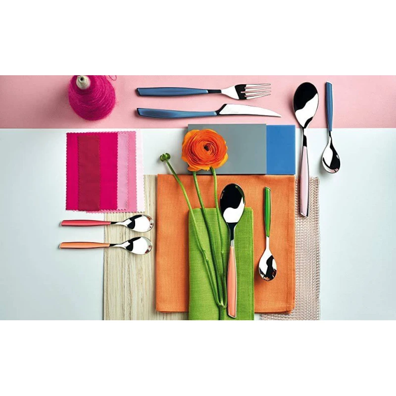 - 6 Cuillères à café Ivoire, orange, vert anis, fuchsia, bleu marine et rouge.