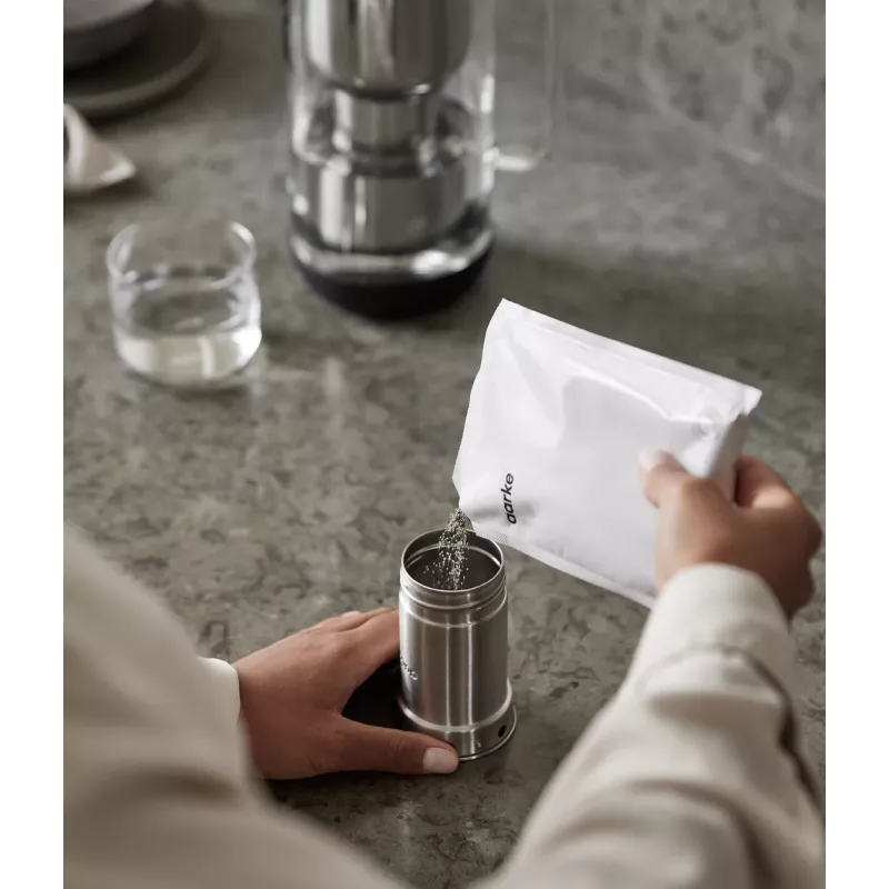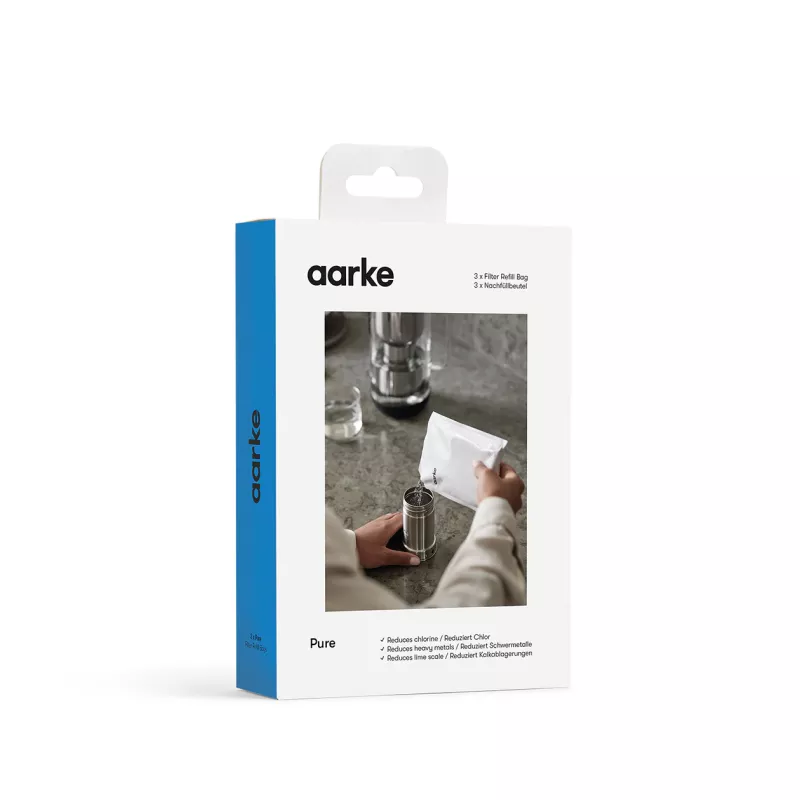 Un sac de recharge de granulés filtrants Aarke non ouvert peut être conservé jusqu’à 2 ans.