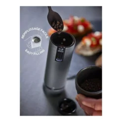 Peugeot LINE Moulin à Poivre électrique Rechargeable U’Select, Batterie Lithium-ion, Carbone, 15 Cm