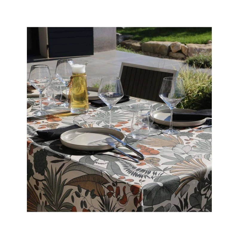 Nappe enduite aux motifs floraux et colorés.
