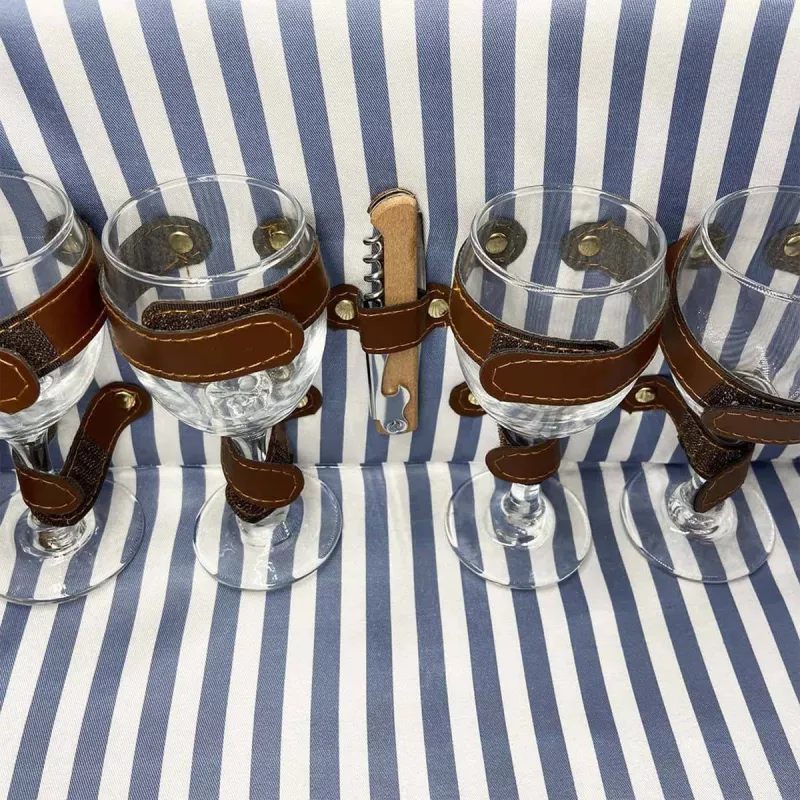 - 4 verres à pied en verre (14 cl) maintenus par des lanières