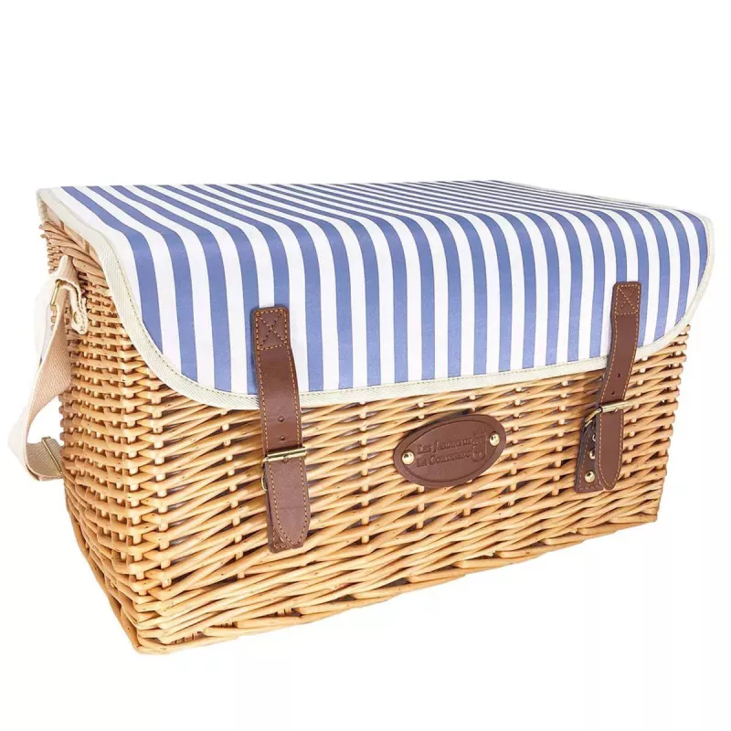 Saint-Malo est un panier pique-nique en osier de motif marinière bleue par Les Jardins de la Comtesse.