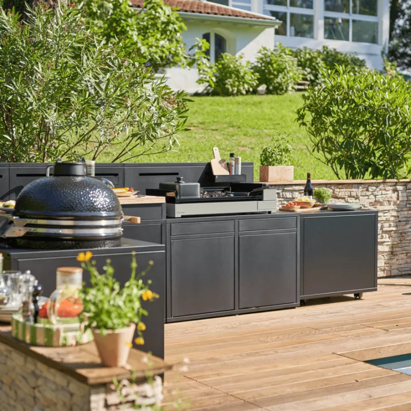 Intégrez ce module à votre cuisine extérieure Forge Adour pour bénéficier d’un espace de préparation et de cuisson pratique et élégant.