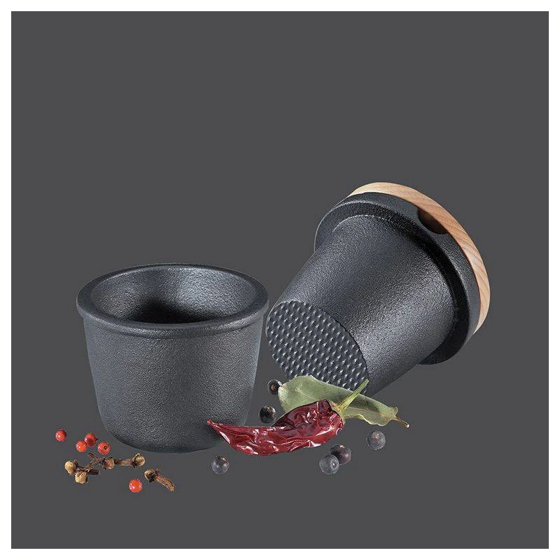 Base de la meule en fonte d’acier, intérieur strié pour broyer au contact de l’insert en fonte lui aussi.