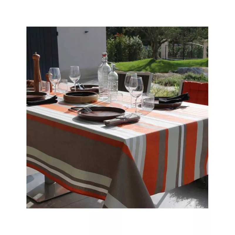 Nappe plastifiée aux rayures estivales.