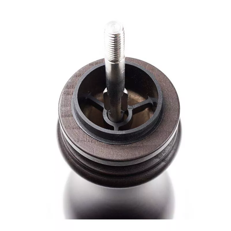 Le mécanisme à poivre est muni d´une double rangée de dents hélicoïdales qui capture les grains, les entraînes vers le bas, puis les bloque afin de les moudre parfaitement.