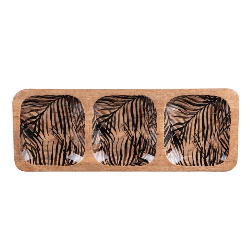Extérieur en bois de manguier, chaque compartiment est recouvert de résine époxy, certifiée pour contact alimentaire.