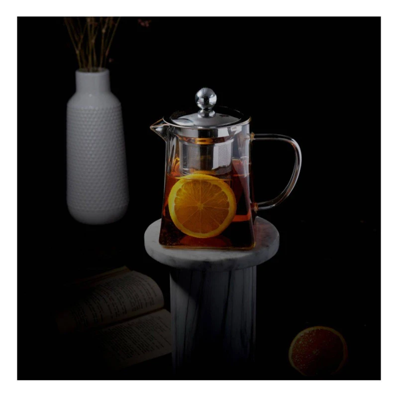 Théière en verre borosilicate, un matériau assurant une grande résistance aux chocs et à la chaleur.