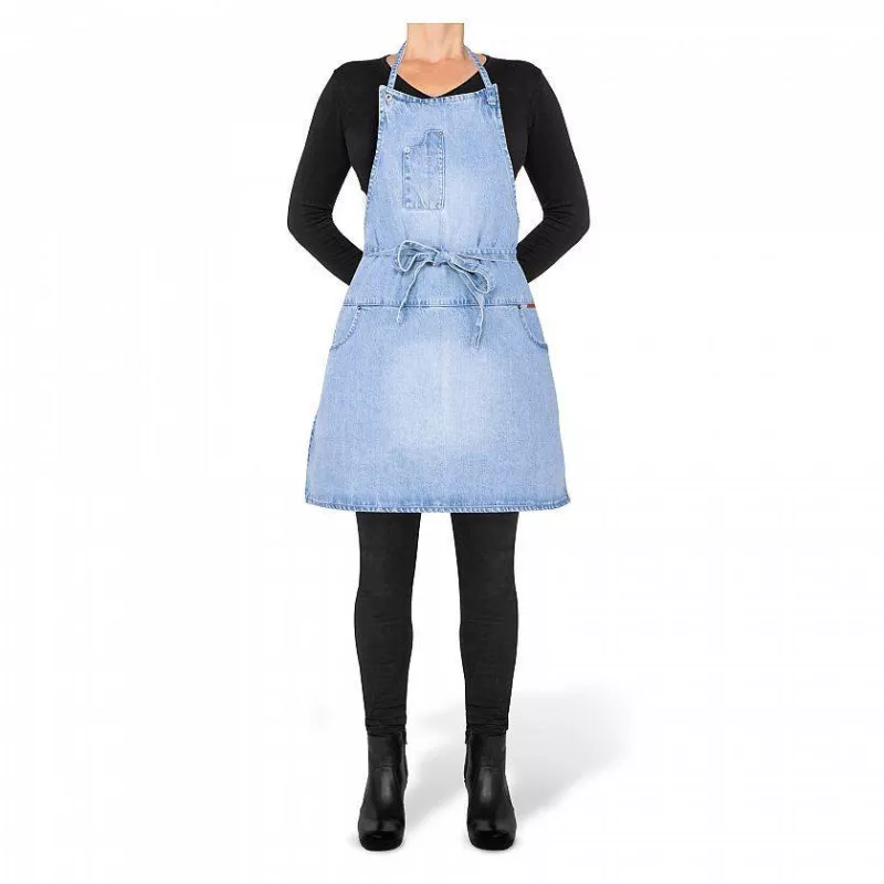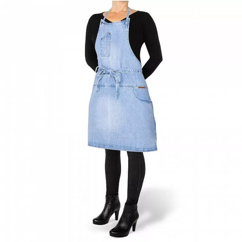 Ce tablier équipé de 5 poches vous permettra de granger, stylo, téléphone, lunettes… Grâce à ces cordons en jeans, vous pourrez le fermer par devant ou derrière.