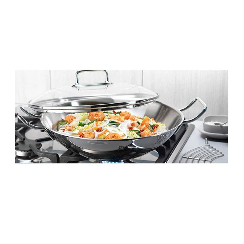 Wok en inox de très belle qualité : répartition de la chaleur grâce au matériau 3 couches