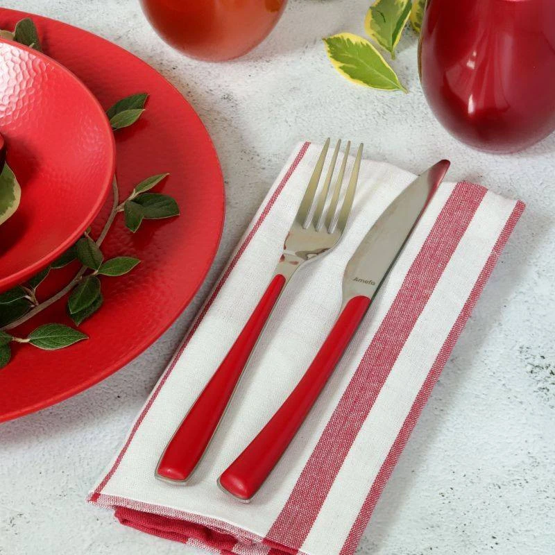 Structure en acier inoxydable se prologeant jusqu’au bout du manche, conférant au couvert, résistance, équilibre et stabilité.